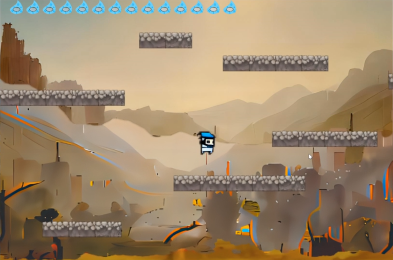 这是一款2D平台跳跃游戏,玩家需要在迷宫般的关卡中不断跳跃、攀爬、避开障碍物和陷阱来获得胜利。但这并不是简单的跳跃游戏,游戏中还有各种元素反应机制、武器机制和合成机制等等。