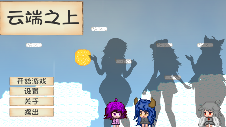 游戏故事背景:曾经天上的云连成一片,生活在蓝天之下。但是组成云的一部分逐渐不满足于只生活在天空上,他们要向世界宣告他们的威名。于是,野心滋生的云朵逐渐壮大,天空上的云朵分成两派,这无疑是颠覆过往的存在,白云自然无法接受如此激进的做法,于是他们产生了摩擦,免不了发生了一场大战。但是反派太过于强大,白云无奈败落,然后分裂成了无数朵小云,其中一朵在战后苏醒过来,为了回到最初那般美好的时光,小白云决定要寻找散落的其他云朵,重新融合成为大白云去战胜反派。可是?好像有些东西不对劲?;《云端》,一款不那么纯粹的2d射击游戏,或许比射击更重要的是,如何利用场内的道具顺利通过关卡?场内的单腿走地鸡竟然是名为“云中君”的怪物?云的种类怎么各种各样的啊?!什么?!刚打到boss关却告诉我身处于云端?!喂,老板,你的机器也太不靠谱了吧!《云端》,一款以云为原型,对云展开遐想的作品,融入射击,解密,跑酷等元素的游戏,一起踏上寻找伙伴的路。等等……结果我们都只是云玩家?!!