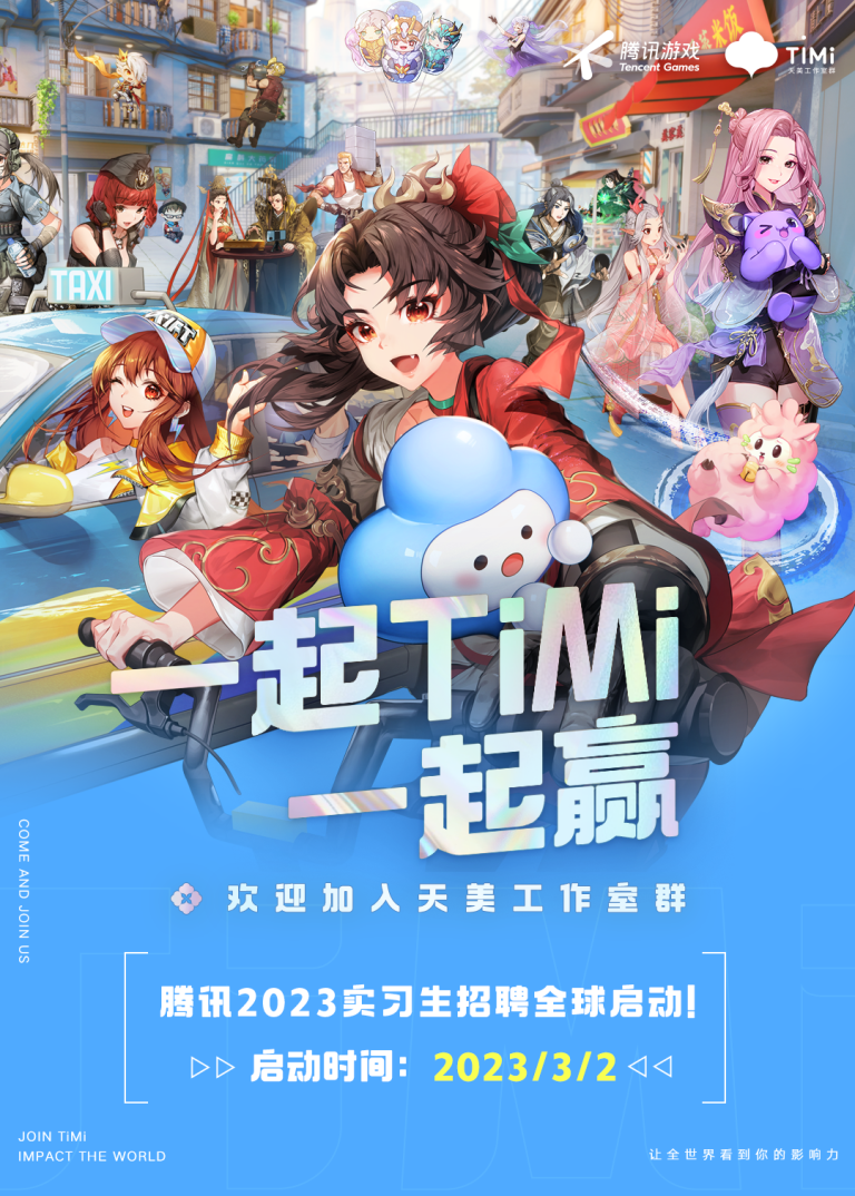 腾讯2023年实习生招聘已于3月2日启动,欢迎各位同学加入天美大家庭!