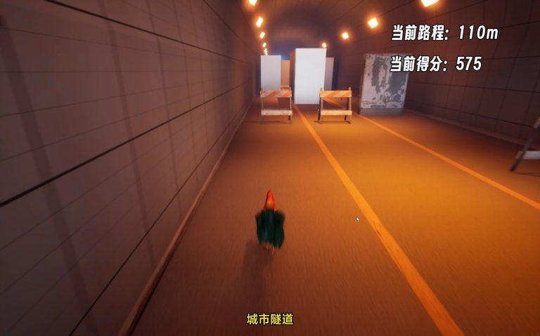本游戏讲述了一只求生欲很强的鸡在城市中逃命的故事,它面临着被端上餐桌的命运,但它决心与命运抗争,于是它挣脱了铁笼逃往野外以便谋求一线生机,玩家将操作这只鸡,使用空格键跳跃,方向键或A.D键切换跑道,操控它避开重重障碍,躲避人类的追捕,尽可能地跑出更高的里程